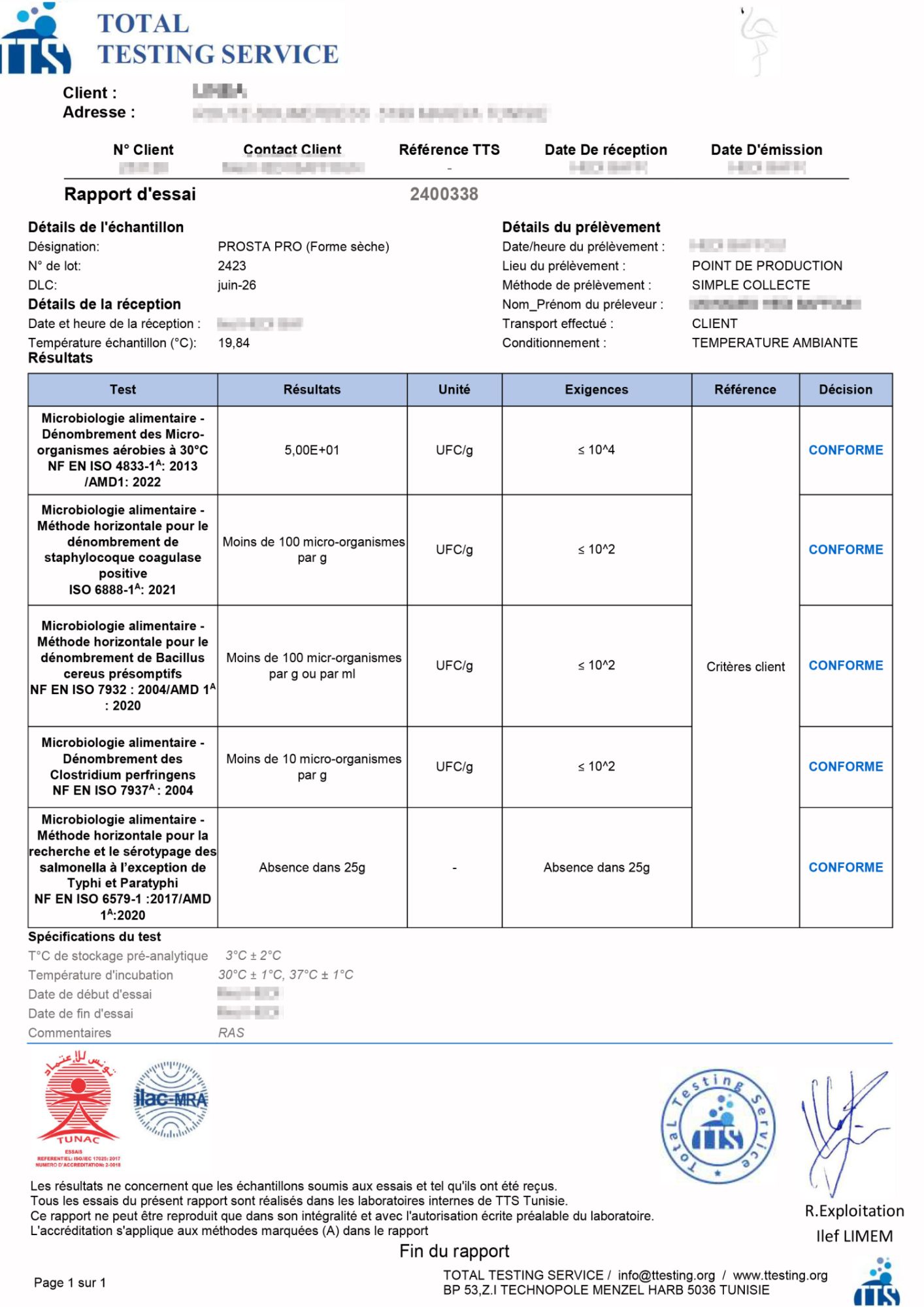 عند التوصيل ستتسلّم شهادة التحاليل المخبرية