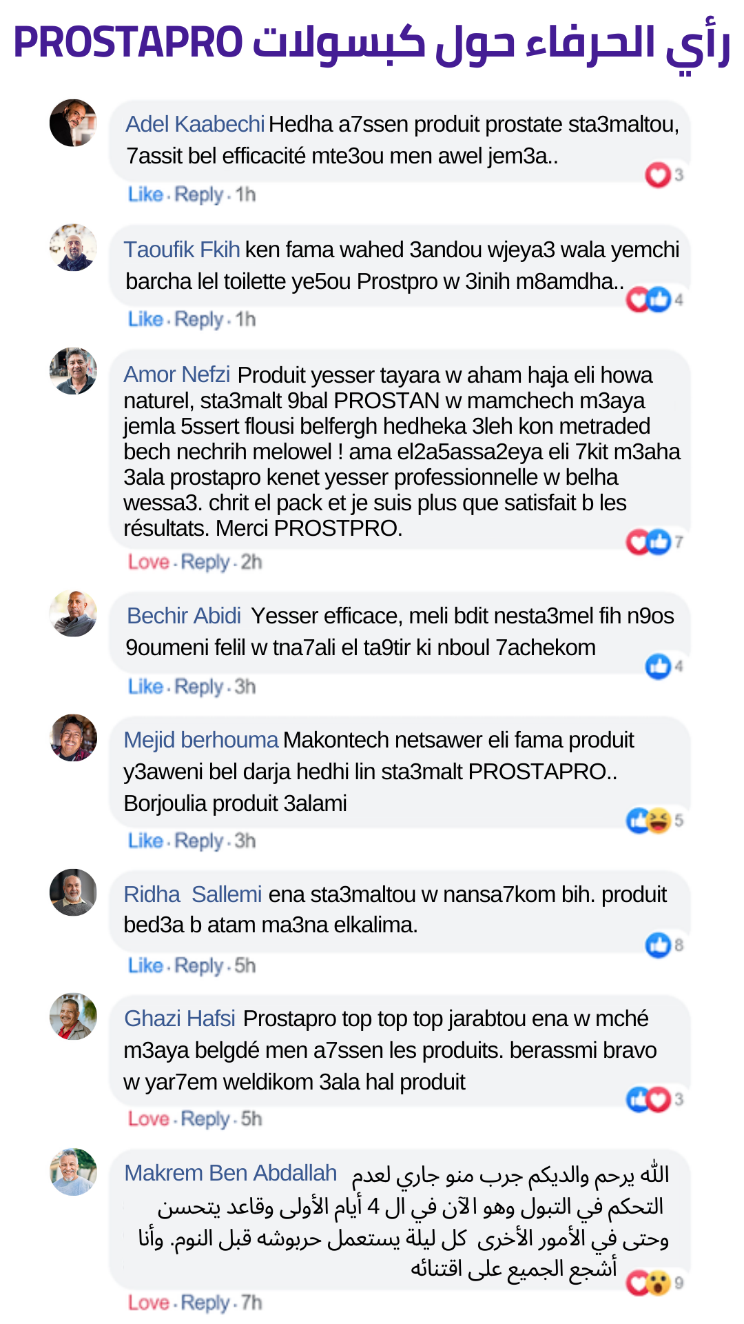 يوصي باستخدام PROSTAPRO لجميع مرضى البروستاتا. اثبتت الدراسات أن هذا المنتج يعطي تحسنا كبيرا , يبدأ المنتج في العمل على الفور ويومًا بعد يوم يعيد صحة البروستاتا.